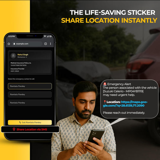 Akshar Arts Bhuwana Reach Me (Pack of 2) – Waterproof Contact Sticker/Tag for Car with Privacy-Protected Calling, Wrong Parking, Emergency Call & Location Sharing, Notification Alerts via Ajjas App. (2)