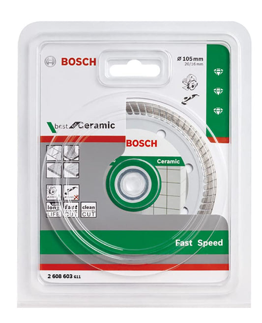 Bosch Professional Turbo Tile Cutting Disc 16/20 Mm Bore, 4" / 105 Mm & Segment Height 10mm, Pack of 1