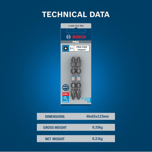 Bosch Professional Impact Screwdriver Bits, Type PH2-PH2 | Double-Ended Screwdriver Bits | Heat-treated S2M Steel | 65mm Length | Magnetic Tip | Heat-Treated for Durability | 2 Pcs Pack