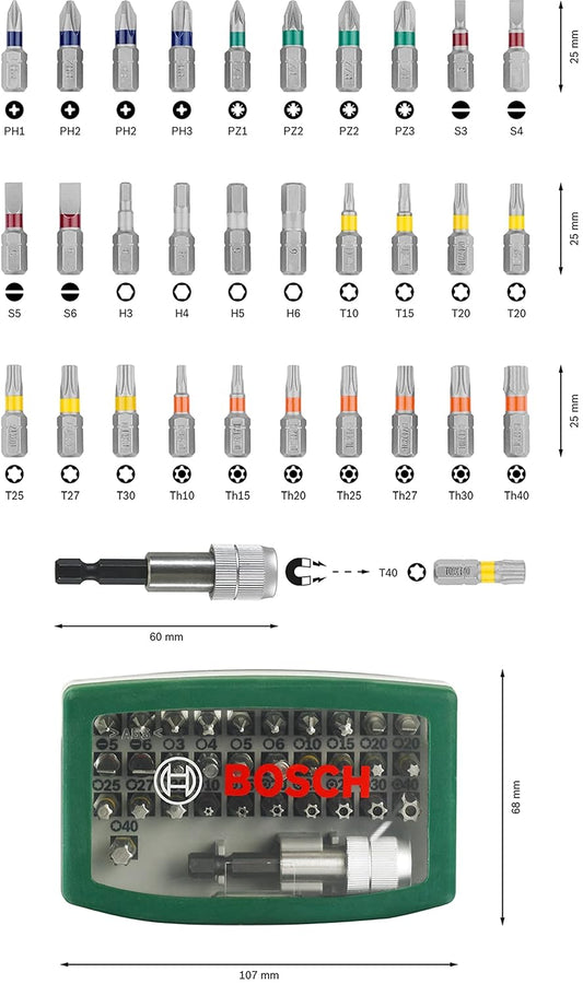 Bosch Metal Screwdriver Bits Kit | For All Power Tool Brands | Quick Change | Includes PH, PZ, S, HEX, Torx & Tamper-Proof Bits | All-in-One Bit Set for Daily Tasks | Compact & Handy Storage Case