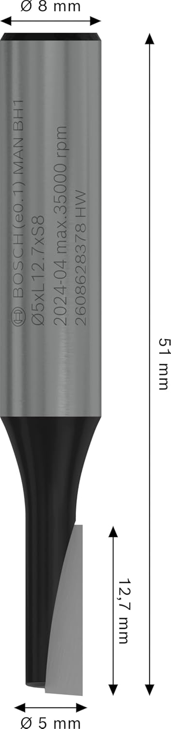 BOSCH PRO Straight Groove Cutter | Ø5xL12.7xS8mm | Engineered for Versatility | Smooth, Precise Cuts in Wood & Composites | Kickback-Reducing Design | Durable Carbide Edge