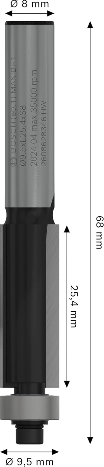 BOSCH PRO Router Bit Bottom Bearing Flush Trim | Ø9.5xL25.4xS8mm | Engineered for Professionals | Clean, Precise Cuts in Wood & Composites | Long-Lasting Carbide Blade | Universal Fit