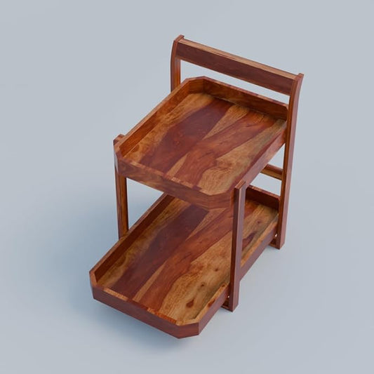 Udaipur Handicrafts Wood Vindy Food Trolly in Teakwood with Walnut Finish