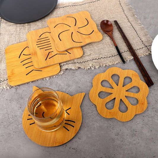 Udaipur Handicrafts Openwork Wooden Coasters for Hot Dishes, Pot, Bowl, Teapot, Pack of 4 (Random Pattern)