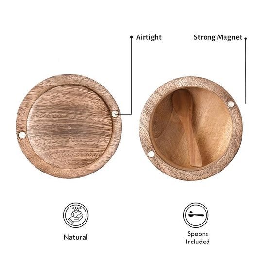 Udaipur Handicrafts Wooden Salt Container with Spoon, Salt Jar for Kitchen, Airtight Box (5 inch x 5 inch)