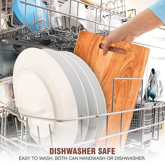 Udaipur Handicrafts Wood Chopping Board for Kitchen - 37.5x23.5x1.2cm|Reversible Cutting Board for Kitchen with Handle, Fruits & Cheese, BPA Free, Eco-Friendly, Anti-Microbial, Beige