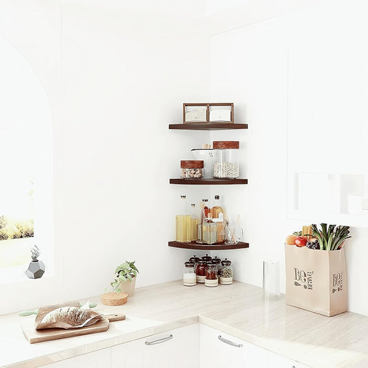 Udaipur Handicrafts Wood 3-Tier Floating Rack Shelf for Living Room Corner Shelf Decorative Rack Shelf Organizer | Storage Shelf for Living Room & Bedroom Display Rack for Storage (Brown)