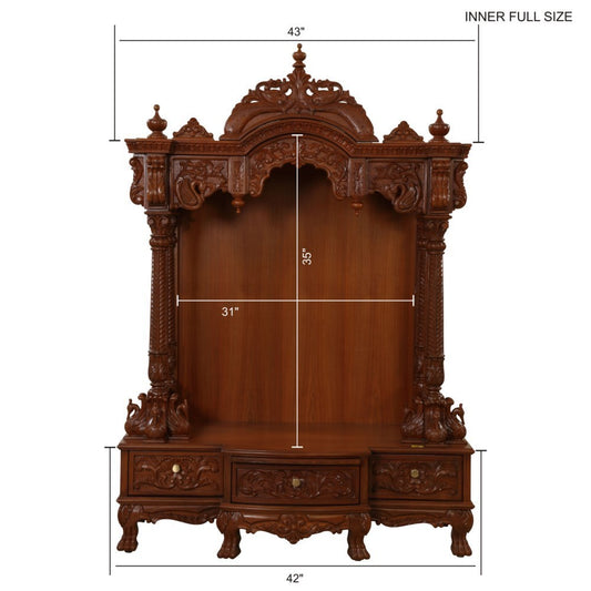 Udaipur Handicrafts Wood Temple/Mandir With One Drawer Storage