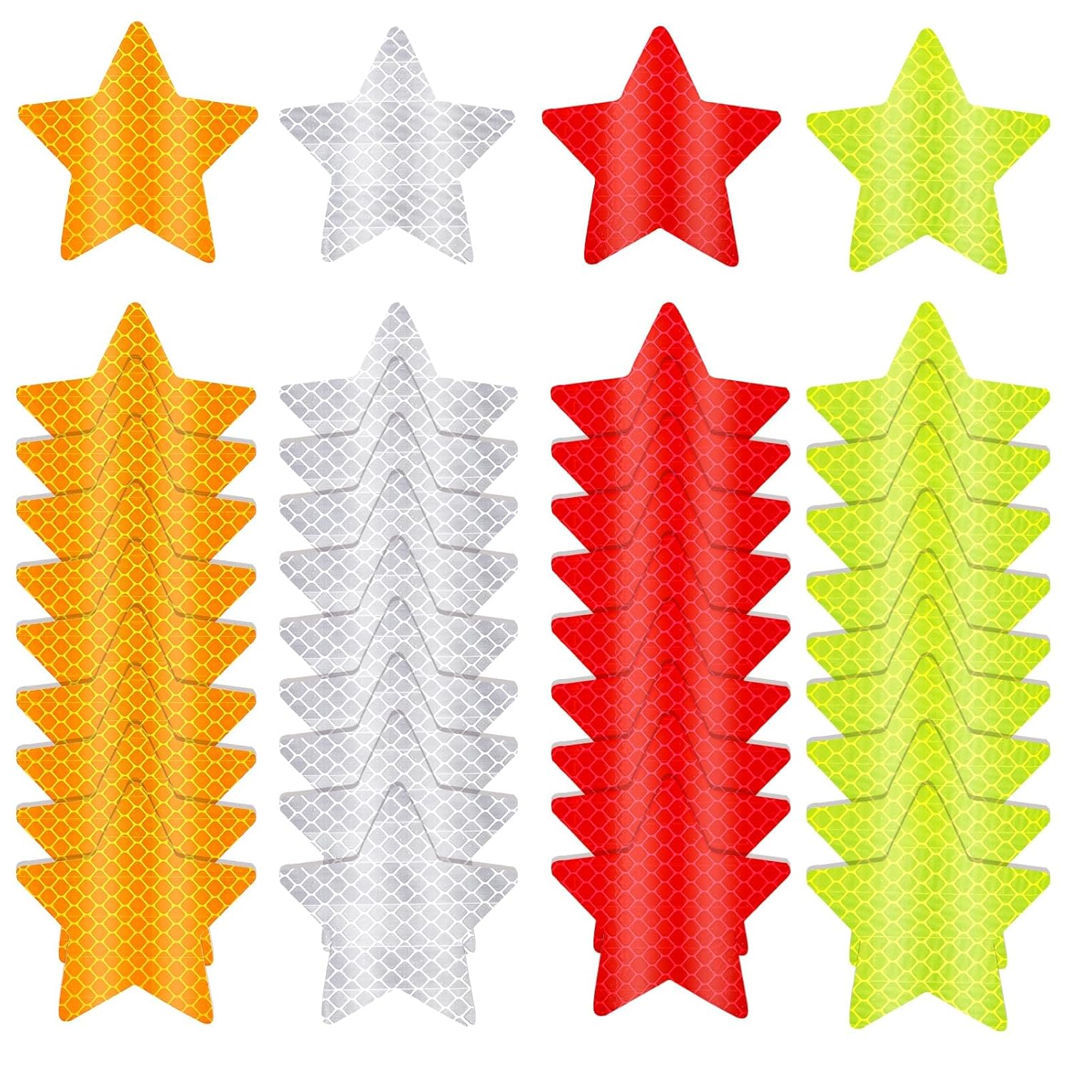 - Comprehensive Set: This package includes 40 reflective stickers in four vibrant colors: fluorescent yellow-green, yellow, red, and white. Each star-shaped sticker measures 2.36 inches (6 cm), making them both attractive and noticeable. These stickers are ideal for a variety of applications