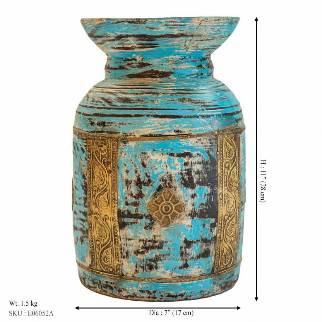 Add a vintage feel to your space with Indune's Distressed Blue Wooden Pot. The Brass artwork on the pot enhances its raw feel. This Pot goes well as a piece of home decor for dead corners and increases the vibrancy of the room. This artifact, even without flowers, adds a charm to the surroundings. It can also be used in Living rooms and as desk-top decor pieces.