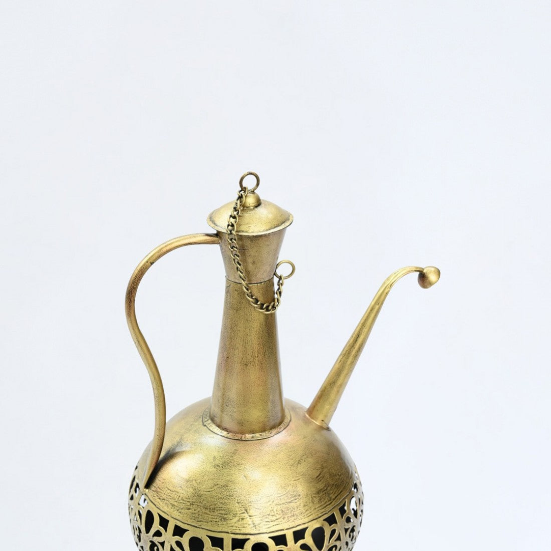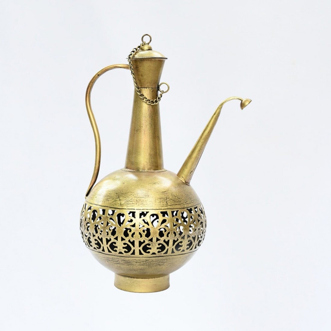 The Floral Cut Iron Perforated Surahi has a unique, intricate design that is both elegant and simplistic. It carries a rich history and shares the moments of the past with a nostalgic taste. The perforated metalwork and floral design give it a delicate appearance.