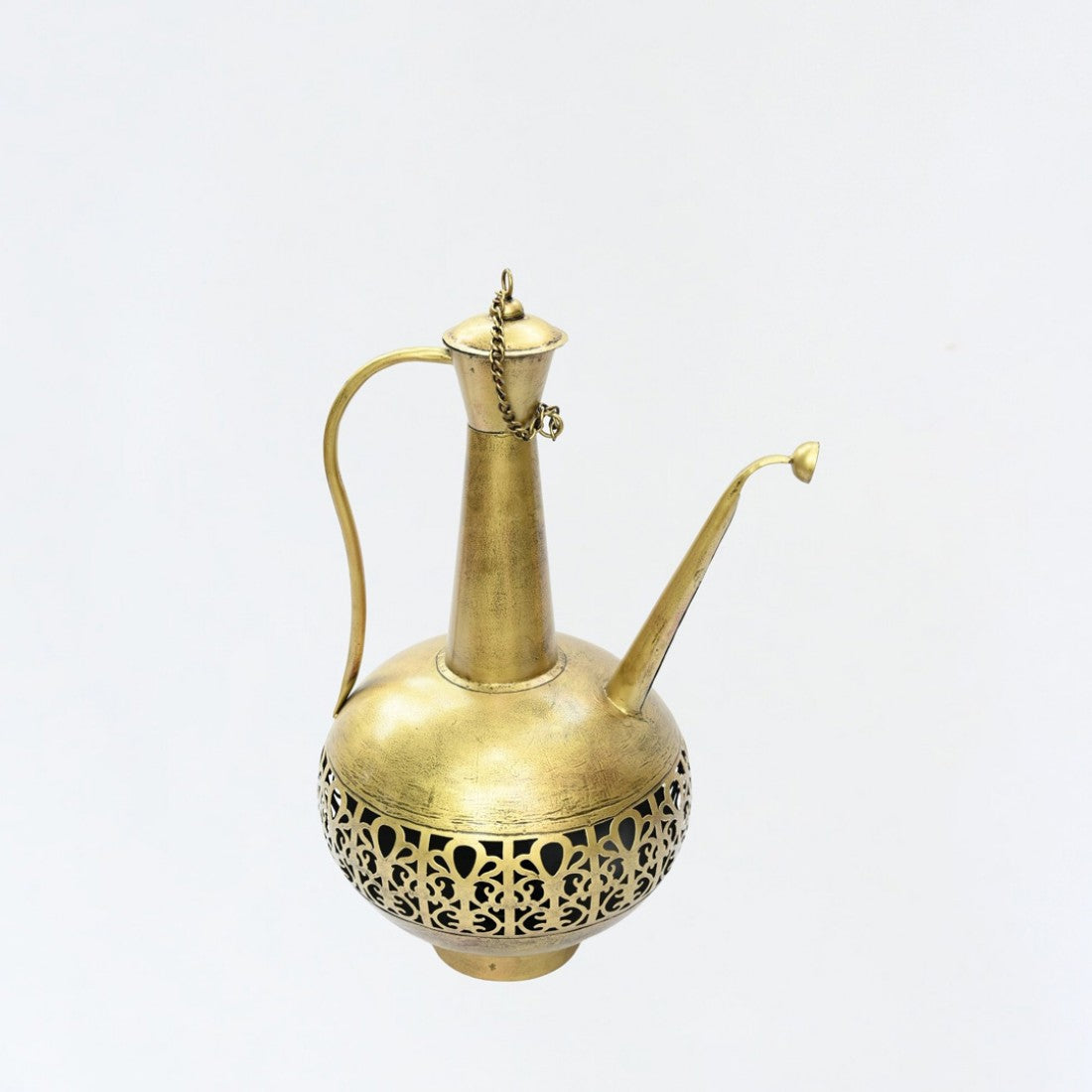 Introducing our floral cut decorative Surahi - a stunning piece of art. Standing at 18 inches tall, this Surahi is sure to make a statement in any room or at any gathering. The delicately crafted floral design is sure to catch the eye of anyone who sees it, making it a great addition to your decor.