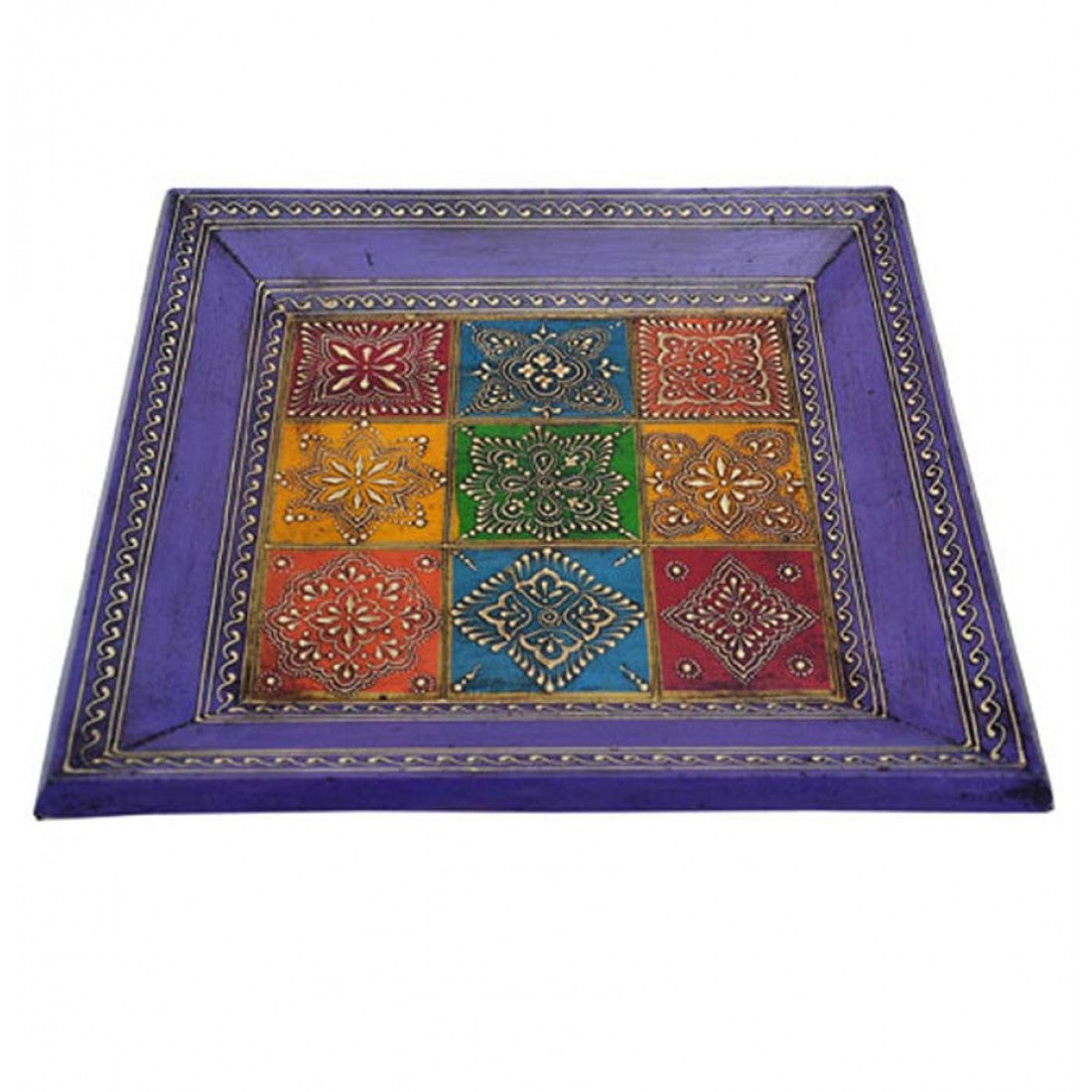 Hand Painted Tray - Platter Square Multi Colours