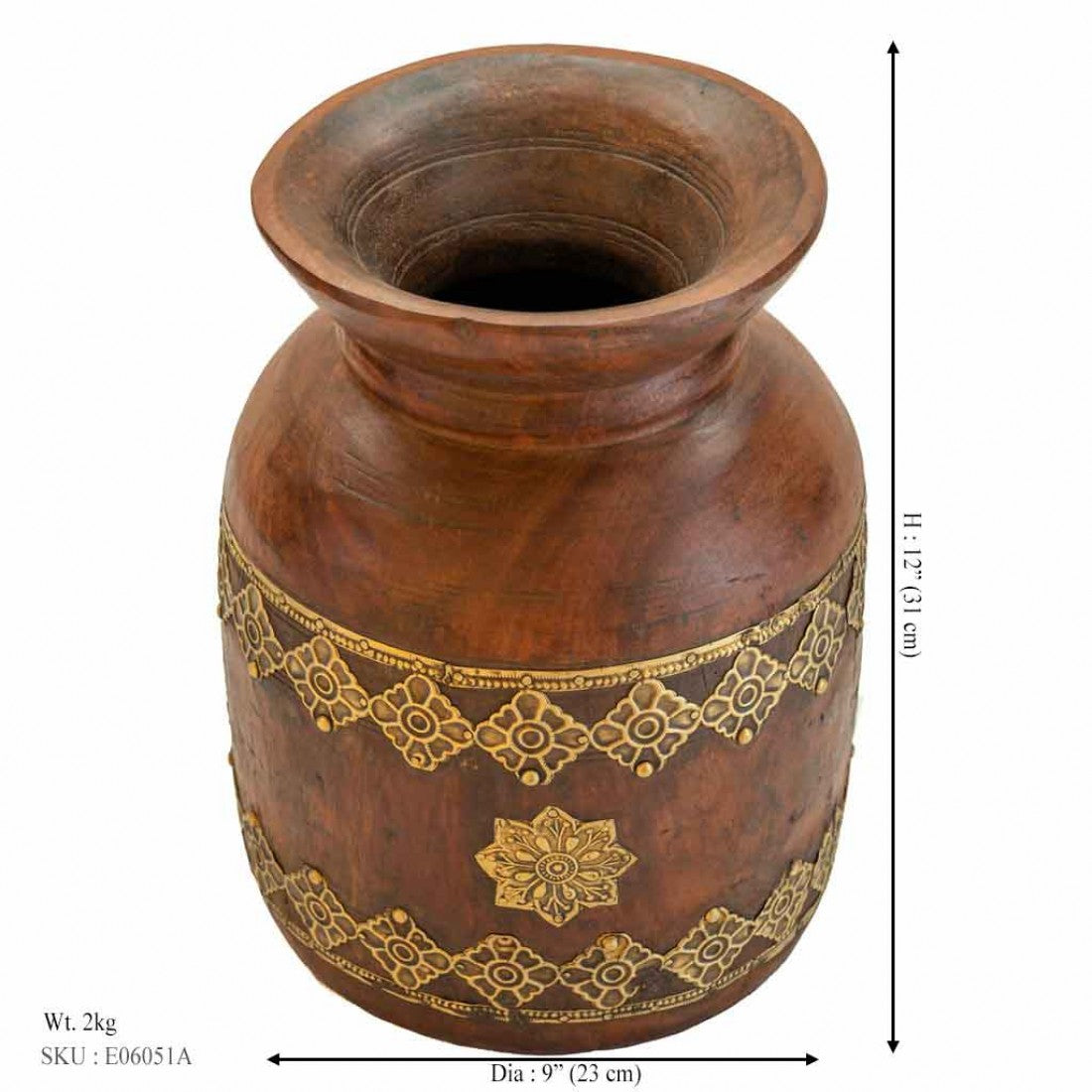Add a vintage feel to your space with Indune's Distressed Green Wooden Pot. The Brass artwork on the pot enhances its raw feel. This Pot goes well as a piece of home decor for dead corners and increases the vibrancy of the room. This artifact, even without flowers, adds a charm to the surroundings. It can also be used in Living rooms and as desk-top decor pieces.