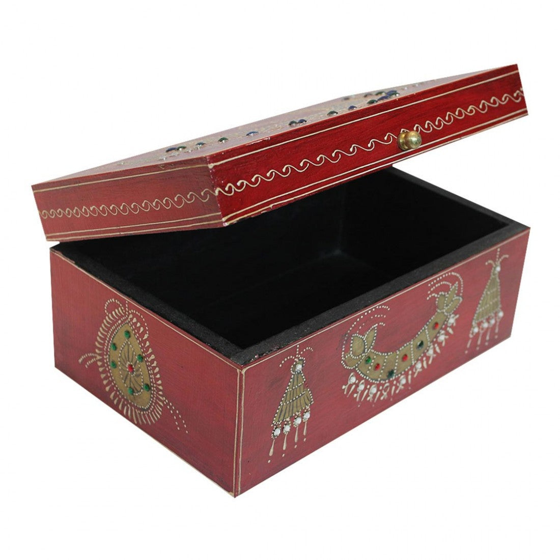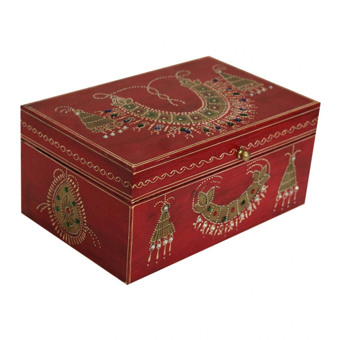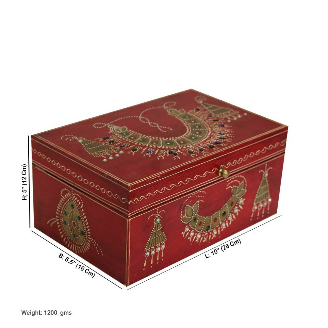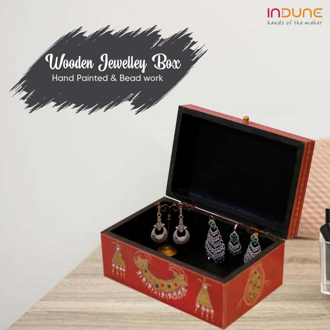 A perfect box for your jewellery dwelling that adds a niche to your dressing. This jewellery box is hand painted and has colourful bead work to add a shimmer to the look and feel of your room.