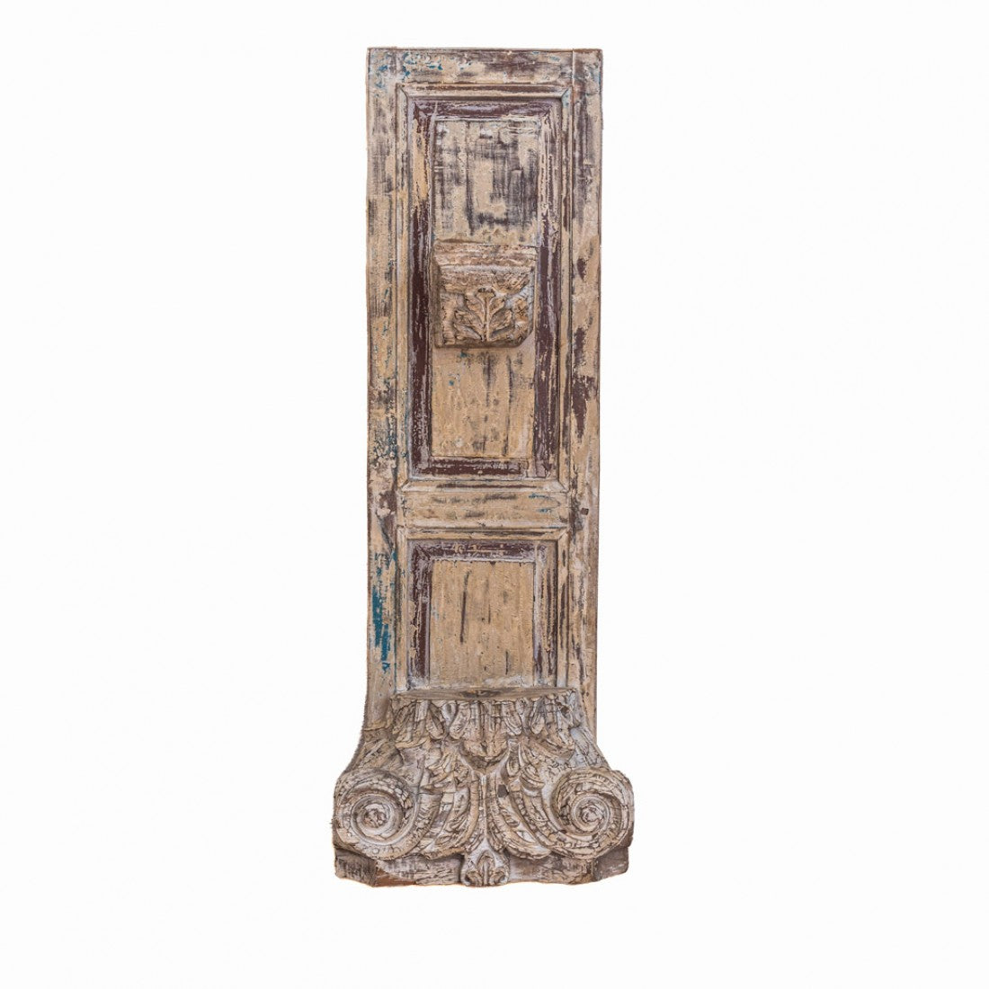 This floor mounted carved wooden Candle Stand is a beautifully crafted piece that combines simplicity and elegance. It is crafted out of reclaimed pieces of wooden carvings & planks. The natural wood grain & distressed white finish gives it a rustic and earthy feel, while the intricate carving details add a touch of sophistication & class. The plain design of the stand allows it to blend seamlessly with any decor style.