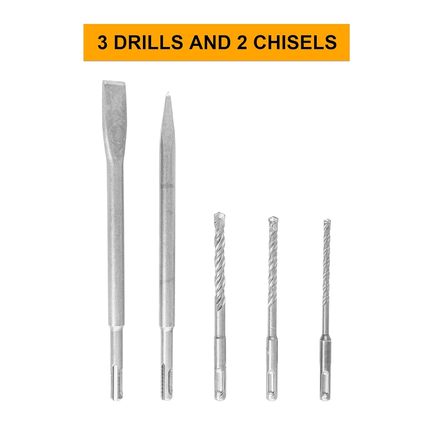 - ❤【WHAT YOU WILL GET】 Rotary hammer*1; sds-plus drill bits *3; sds-plus chisels*2; Auxiliary handle*1;Replaceable carbon brush 1 set; Grease*1;Carrying Case*1.