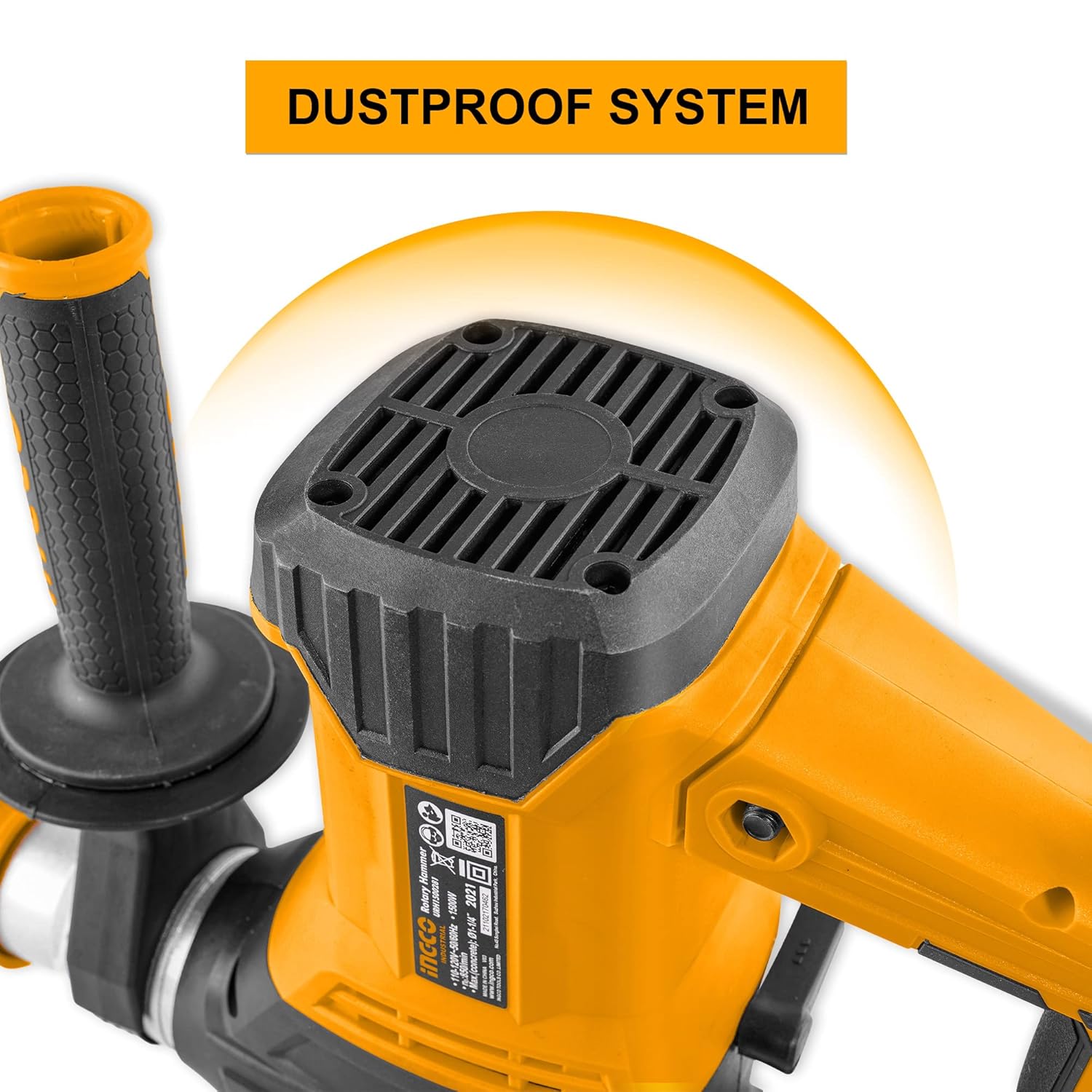 - ✔️【POWERFUL MOTOR】 INGCO industrial motor with 5.5 J impact energy is designed to complete heavy duty concrete and metal working projects with ease and precision.copper motor allows long working time without burning the machine. Anti-dust bottom structure extend the hammer’s use life.