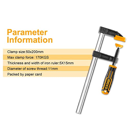- Feature - Rust resistant zinc plated steel bar; Sliding head with multiple disc-clutch holds work securely; INGCO design provide you New comfort grip handle with fast moving screw