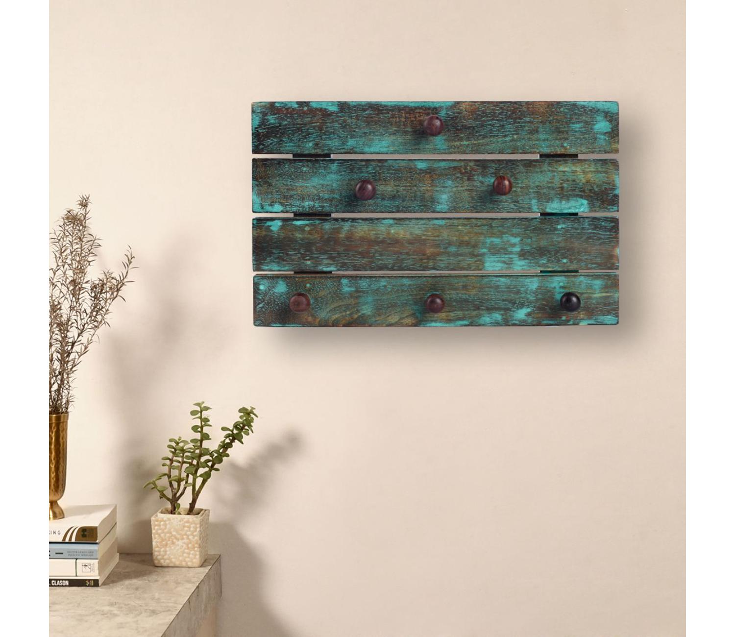 Udaipur Handicrafts Antique Finish Mango Wood 6 Hooks Key Holder