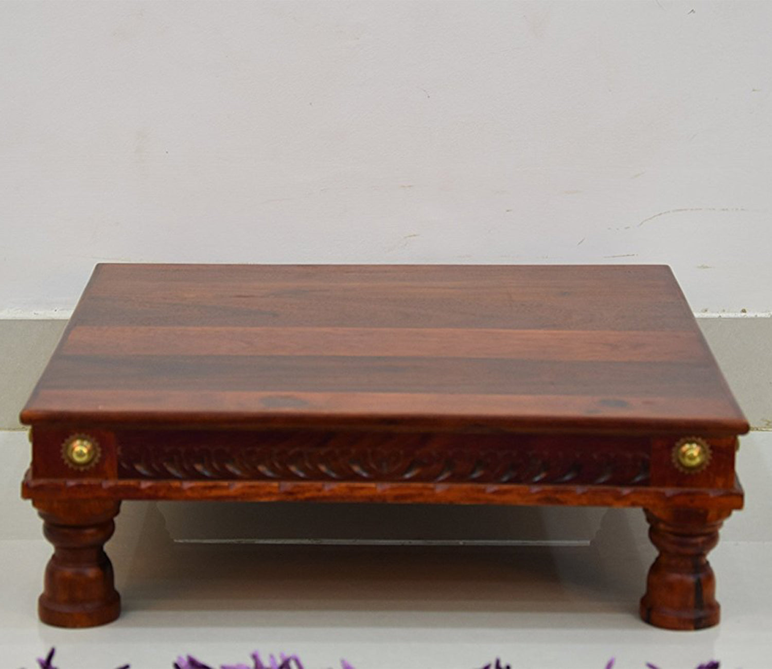 Udaipur Handicrafts Brown And Gold Wooden Chowki
