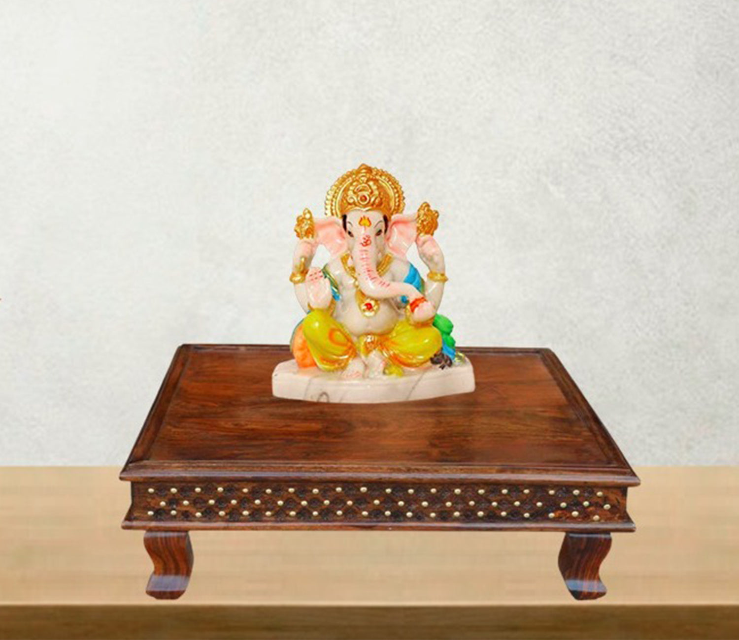 Udaipur Handicrafts Modern Style Brown And Golden Wooden Chowki