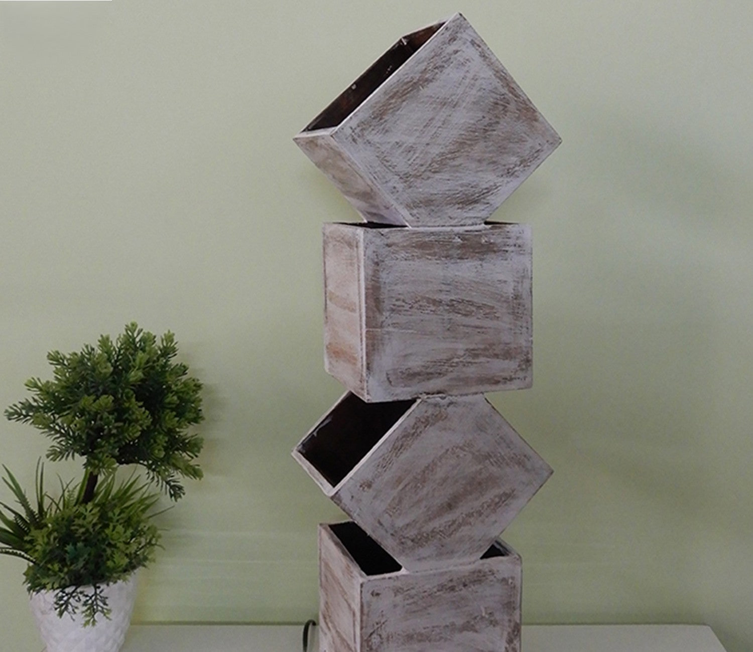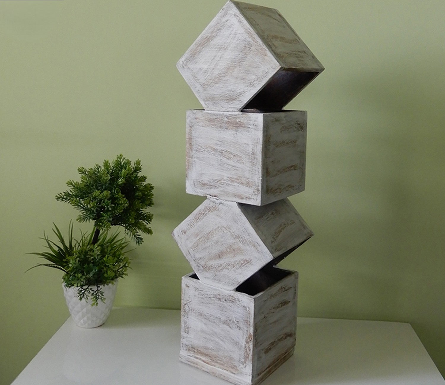 Udaipur Handicrafts White Distress Finish Wooden Box Over the Box Table Lamp