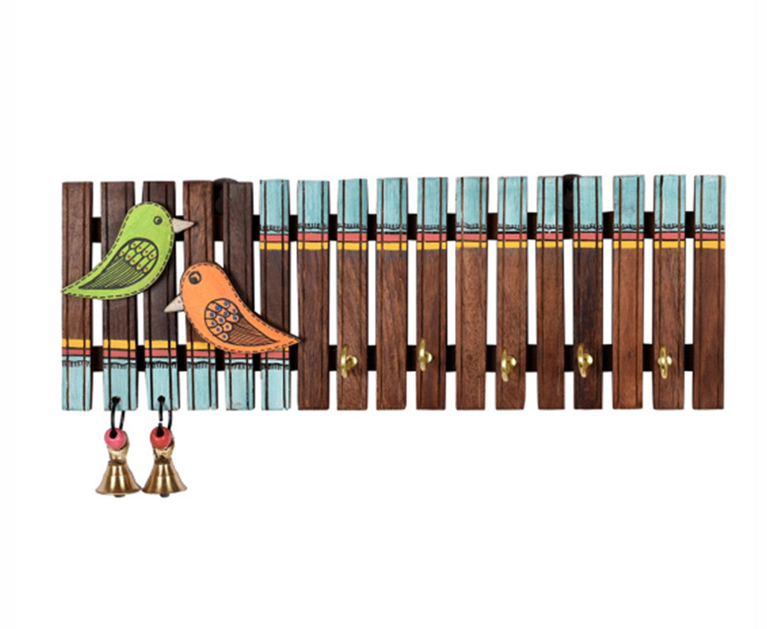 Udaipur Handicrafts Wood Handcrafted Tribal Art Wooden Stripes And Birds Key Holder