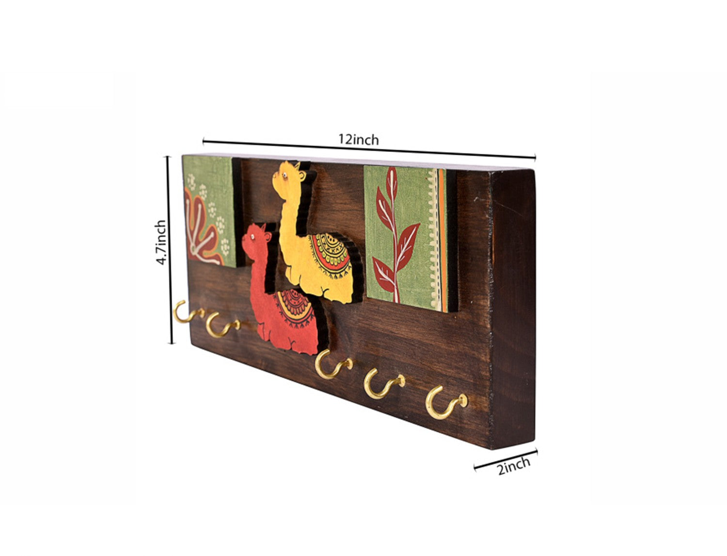 Udaipur Handicrafts Wood Multicolor Tribal Art Alpaca Theme Key Holder