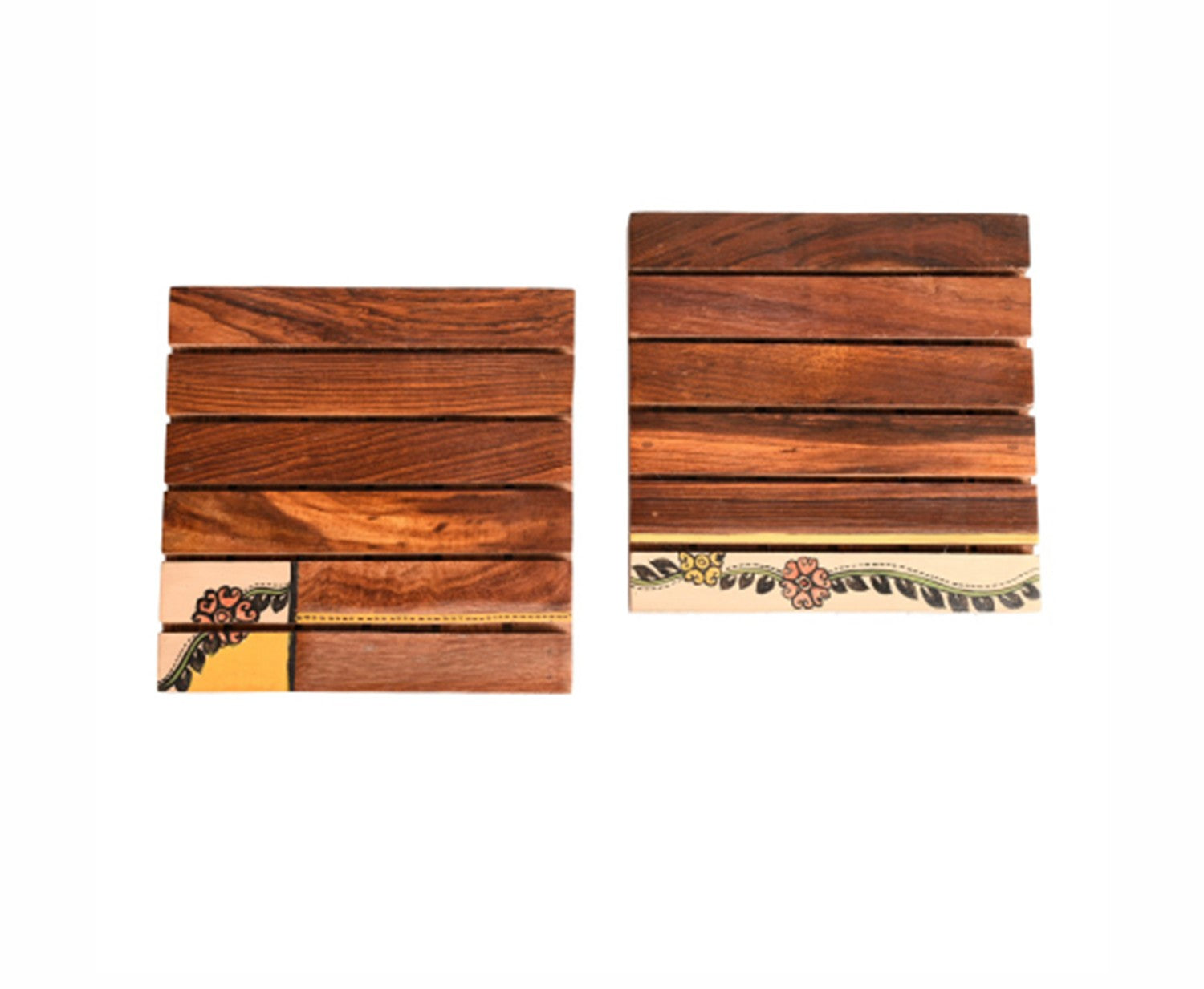 Udaipur Handicrafts Wooden Handcrafted Flower Art Coaster