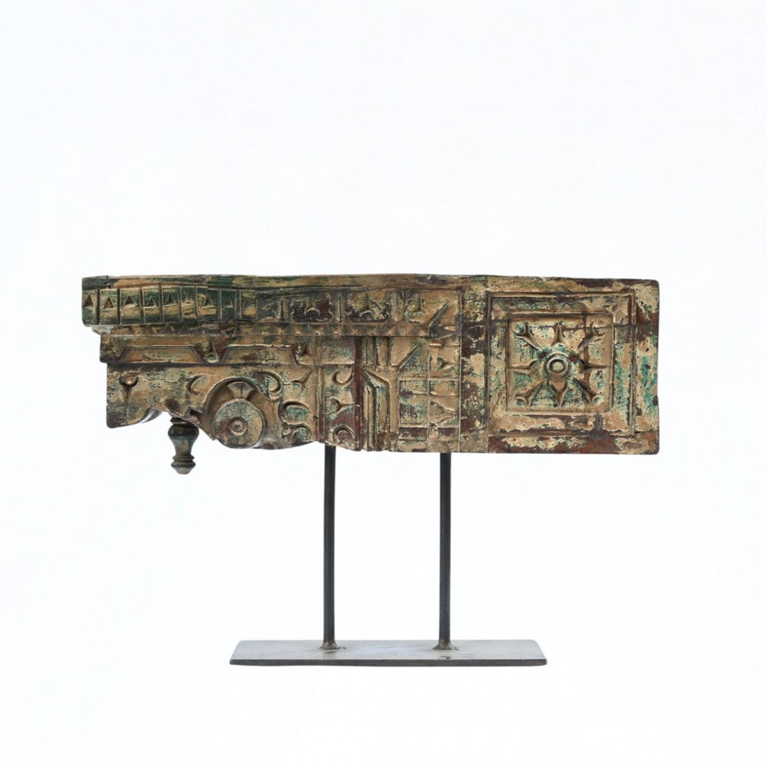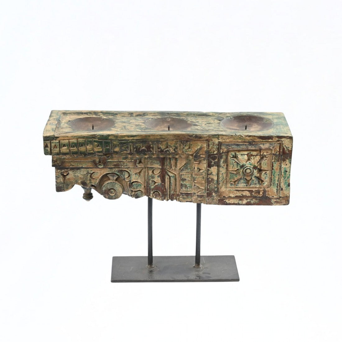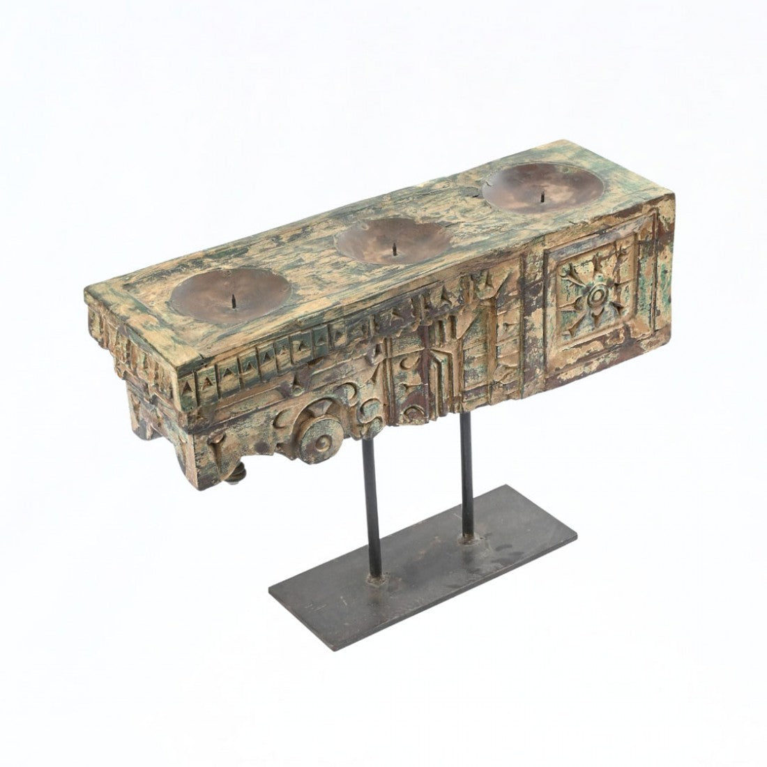 Vintage Wooden Floral Carved Candle Holder With A Stand