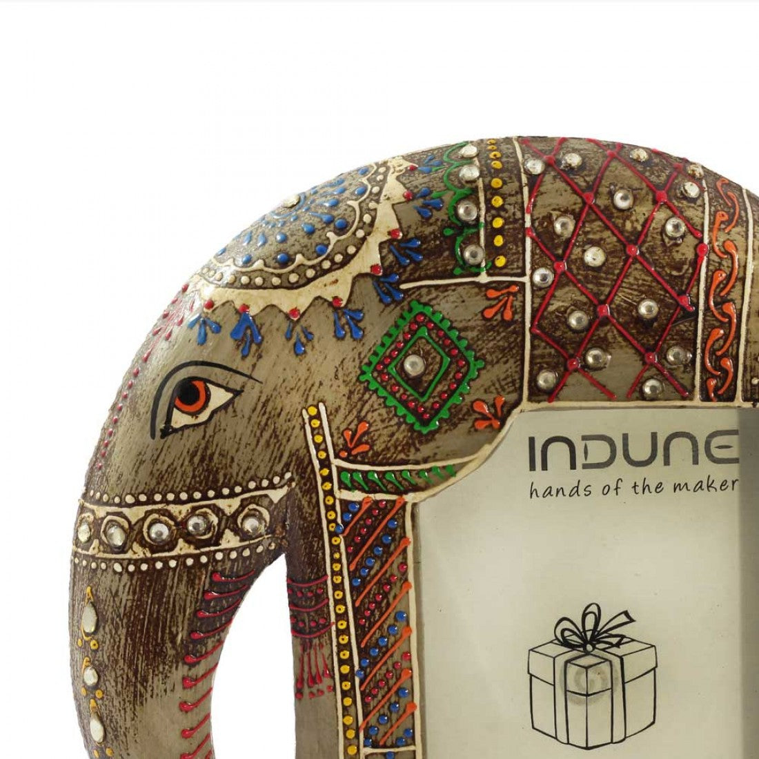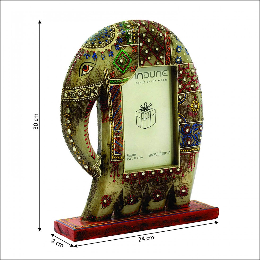 Your Happy Memories are Caged Here! Capture your unforgettable moments of happiness and display them here in these colorful, floral elephant shaped wooden Photo Frames with stands, available in three lively colors: blue, red, and cream-grey. Capture your memories in frames by Indune. Photo frame made up of wood in a very unique design of Elephant. It make your picture look more beautiful and also gives a nice look on room tables.
